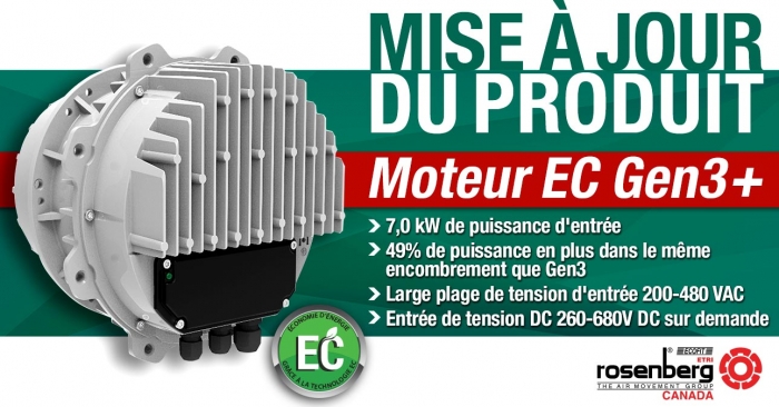 Rosenberg Canada dévoile le nouveau moteur EC Gen 3+ : Leader sur le marché du CVAC avec une puissance et une efficacité inégalées