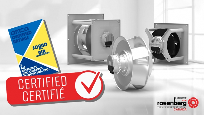 Rosenberg Canada est heureux de partager que notre siège a terminé le processus de validation et de certification avec AMCA International pour nos ventilateurs EC type GKHM avec roues I, E et B.